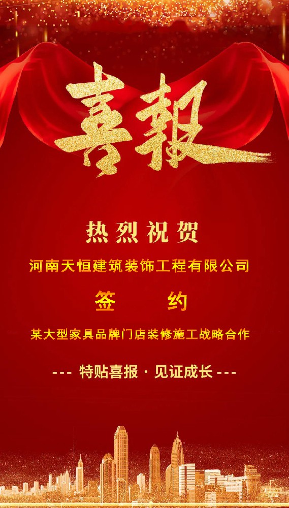 祝賀河南天恒建筑裝飾工程有限公司簽約某大型家具品牌門店裝修戰略合作,裝修熱線:400-777-8377